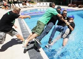 People Who Don’t Get in the Water- My friend threw an awesome party in Sherman Oaks. This is usually an impossible task, but yesterday it was 90 degrees, there was a pool, unlimited beer and countless cheese products and dips. There were approximately 50 people at this party. In my head I was formulating all kinds of crazy pool games. A 25 on 25 Marco Polo, Red Rover but with drowning, and a roof jump cannonball contest were just some of the activities that crossed my mind. I haven’t anticipated that much pool fun since the invention of the noodle. Peak sun hit around 3 PM and I would say only 15-20 people got in the water. What the hell is wrong with you? I overheard someone say the water was too cold. Someone else said they couldn’t get their hair wet, and one partygoer held a straight face and actually said they don’t like water, and some other idiot agreed with them! The only dude I had respect for was the fattest guy at the party. I asked him to get in the water and he said, “No, I have a terrible body and I don’t want people to see it.” Thanks for being honest. Every species gets in the water to cool off or enjoy themselves, what makes you such a rebel? “Oh no thanks, I’m actually quite comfortable standing on a hot ass deck in 90 degree sun talking about editing continuity for 3 hours. Get in that water!